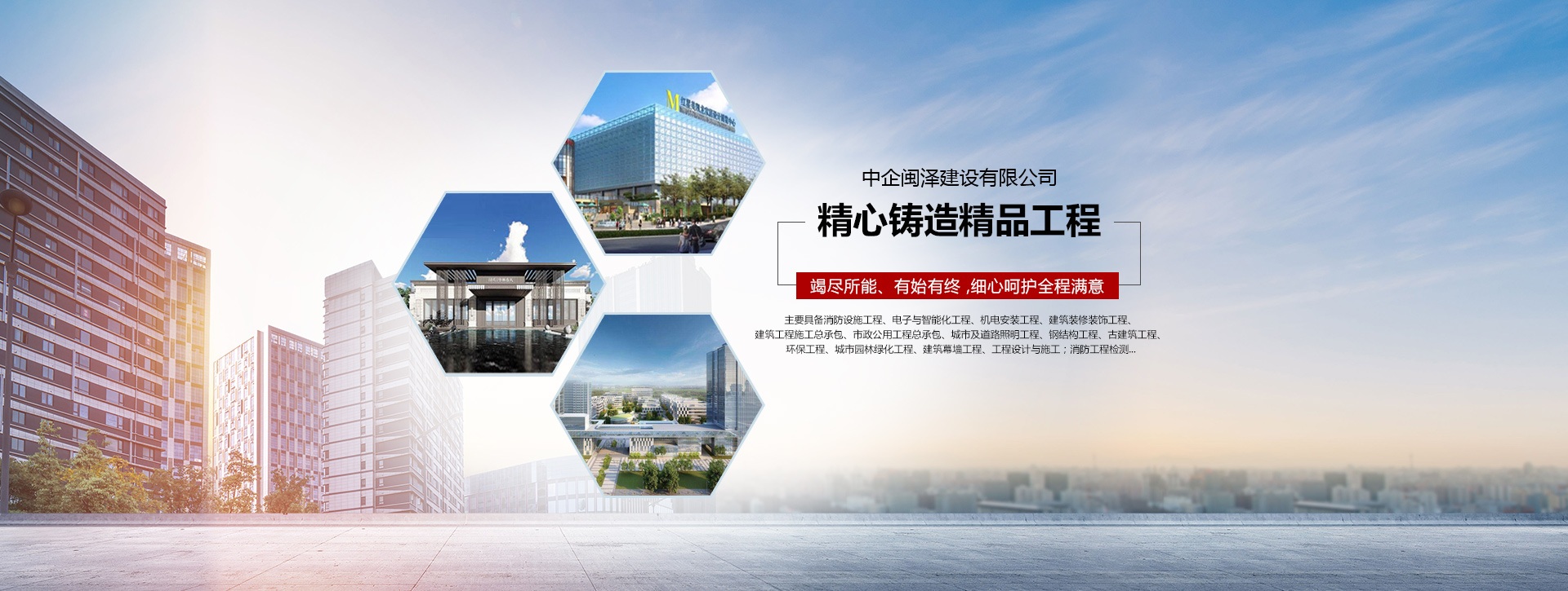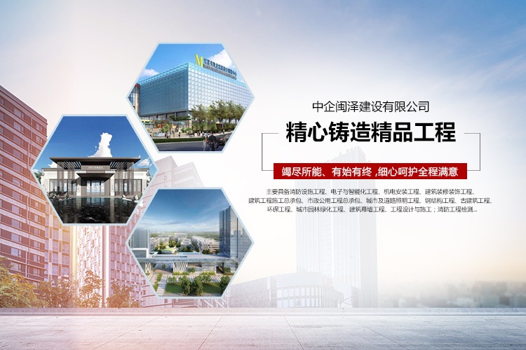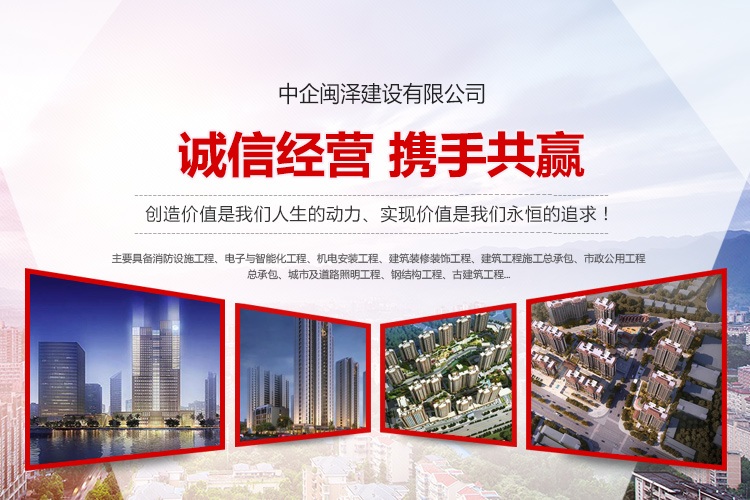 中企閩澤建設有限公司成立于1995年,注冊資金伍仟萬元整,目前為壹級資質企業,主要具備消防設施工程、電子與智能化工程、機電安裝工程、建筑裝修裝飾工程、建筑工程施工總承包、市政公用工程總承包、城市及道路照明工程、鋼結構工程、古建筑工程、環保工程、城市園林綠化工程、建筑幕墻工程、工程設計與施工;消防工程檢測;消防設施維護;施工勞務;消防設備領域內技術研發等資質。公司成立以來,一步一個腳印,建立了嚴格的企業管理制度和完善的質量保證體系,嚴格規范遵守操作流程,創業精神和“誠信、務實、發展、共贏”的企業精神,積極倡導企業文化,把以人為本的理念貫穿于公司發展的全過程。